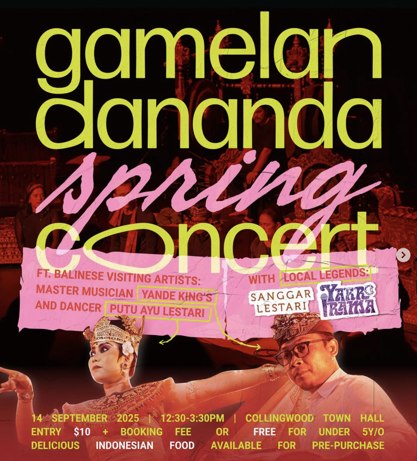 Melbourne’s own Balinese gamelan orchestra, Gamelan DanAnda, held their Spring Concert this month, bringing together Indonesian and Australian artists in a vivid showcase of music and dance. Highlights included the premiere of Tari Puspa Banksia, a new Balinese–Australian collaborative work by guest composer Yande King’s and dancer Putu Ayu Lestari, performed with local dance troupe Sanggar Lestari.